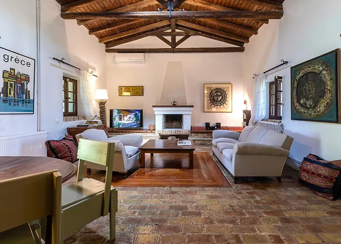 Las habitaciones de la Villa Dafni'S Stable son comodidad pura. Equipadas con tres baños que incluyen duchas y artículos de tocador gratuitos, aseguran una estancia práctica y agradable. Además, el alojamiento ofrece una conexión WiFi gratuita y toallas sin coste adicional para que te sientas como en casa. El espacio cuenta con una terraza y un balcón, ideales para contemplar la belleza de los alrededores.
